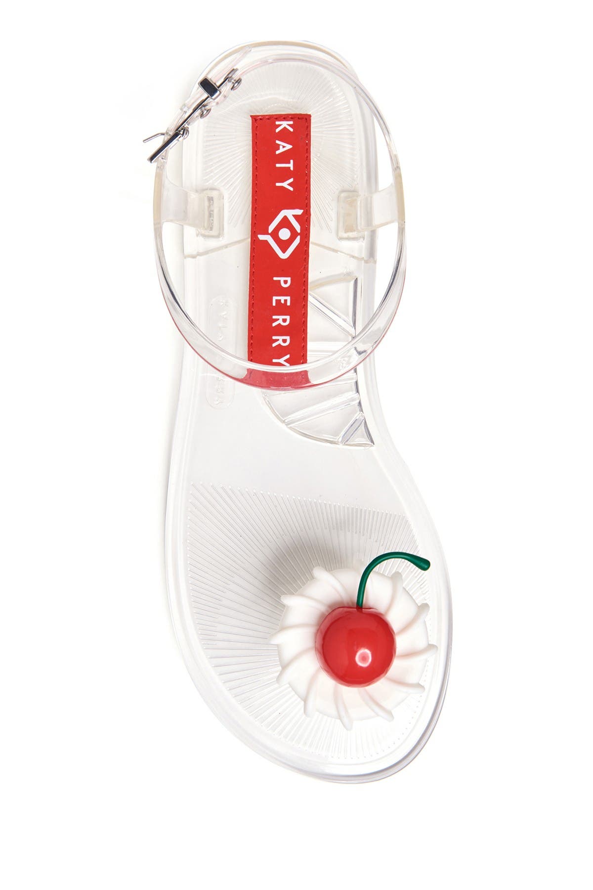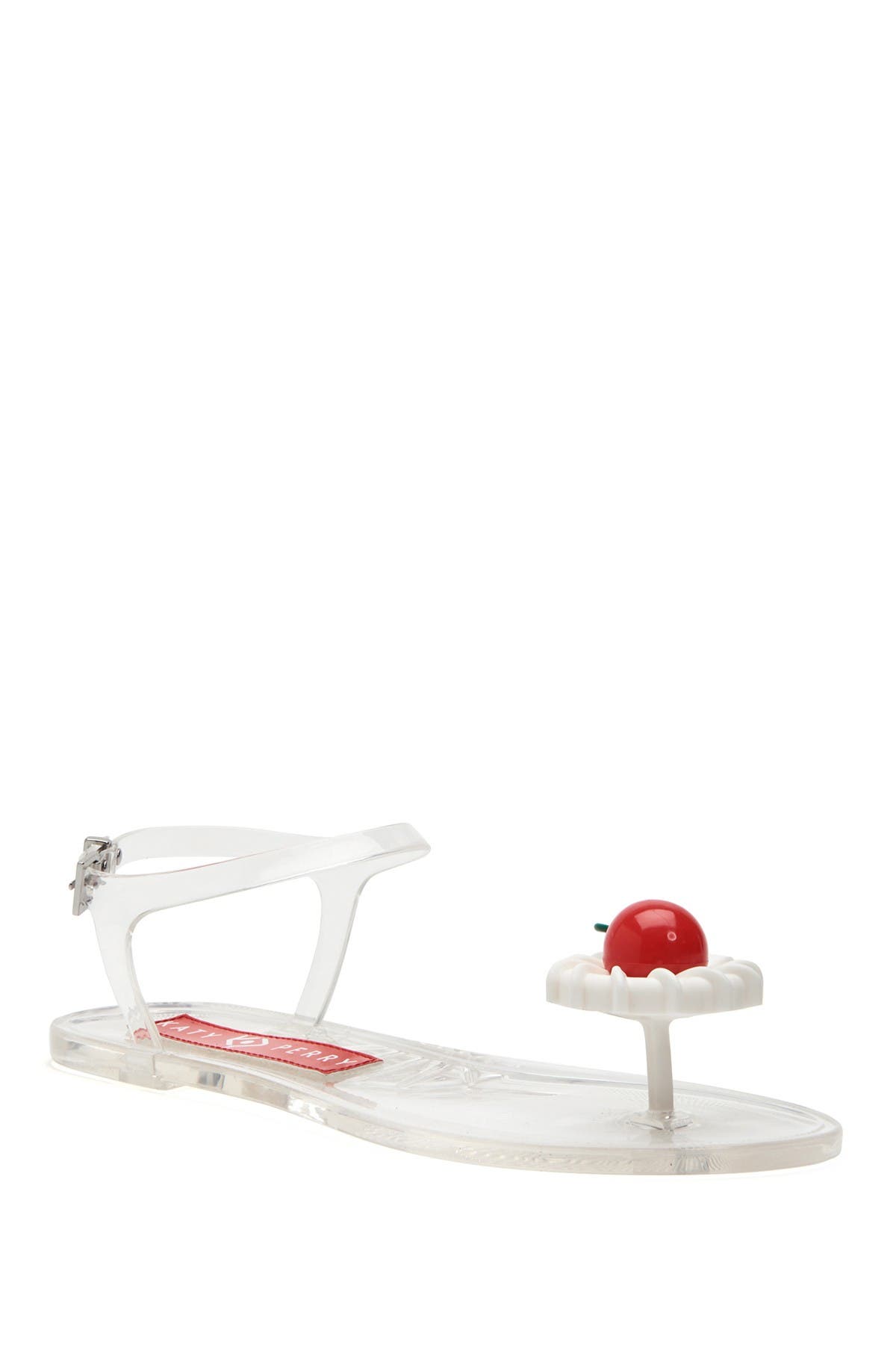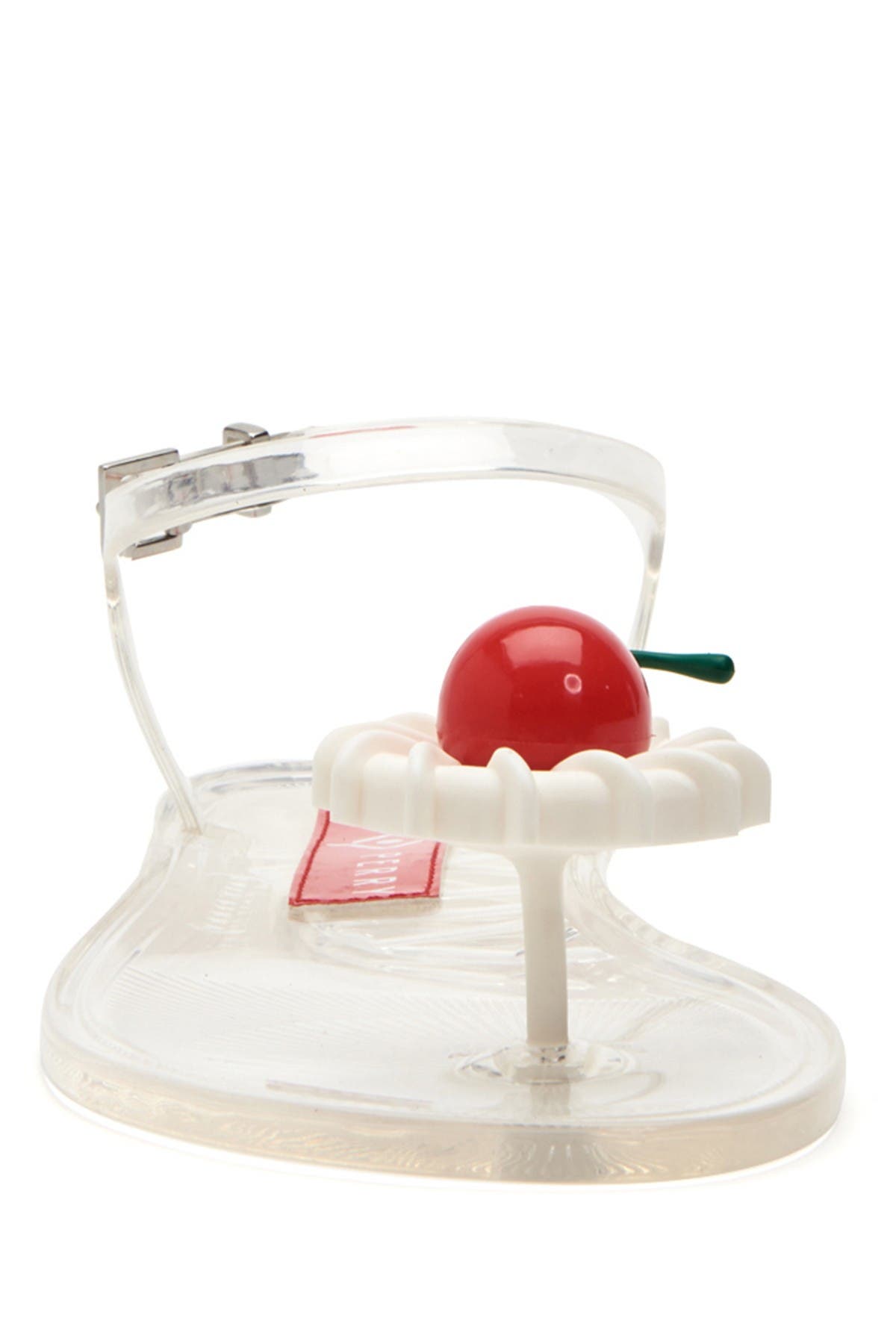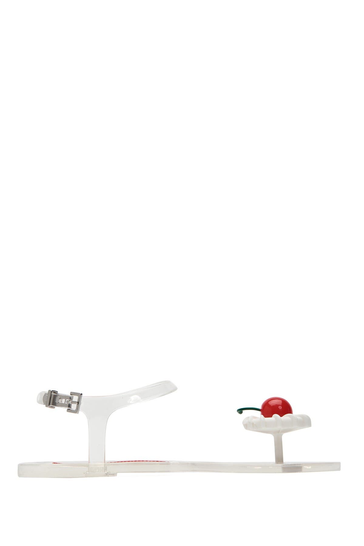 Fruit details and scents create the fun prong-toe, clear jelly 'Geli' sandal for a fun beach-faring look. Sizing: True to size. M=medium width. Whole sizes only; for 1/2 sizes, order next size down. - Prong toe with fruit detail - Clear jelly construction - Scented - Ankle buckle strap closure - Imported