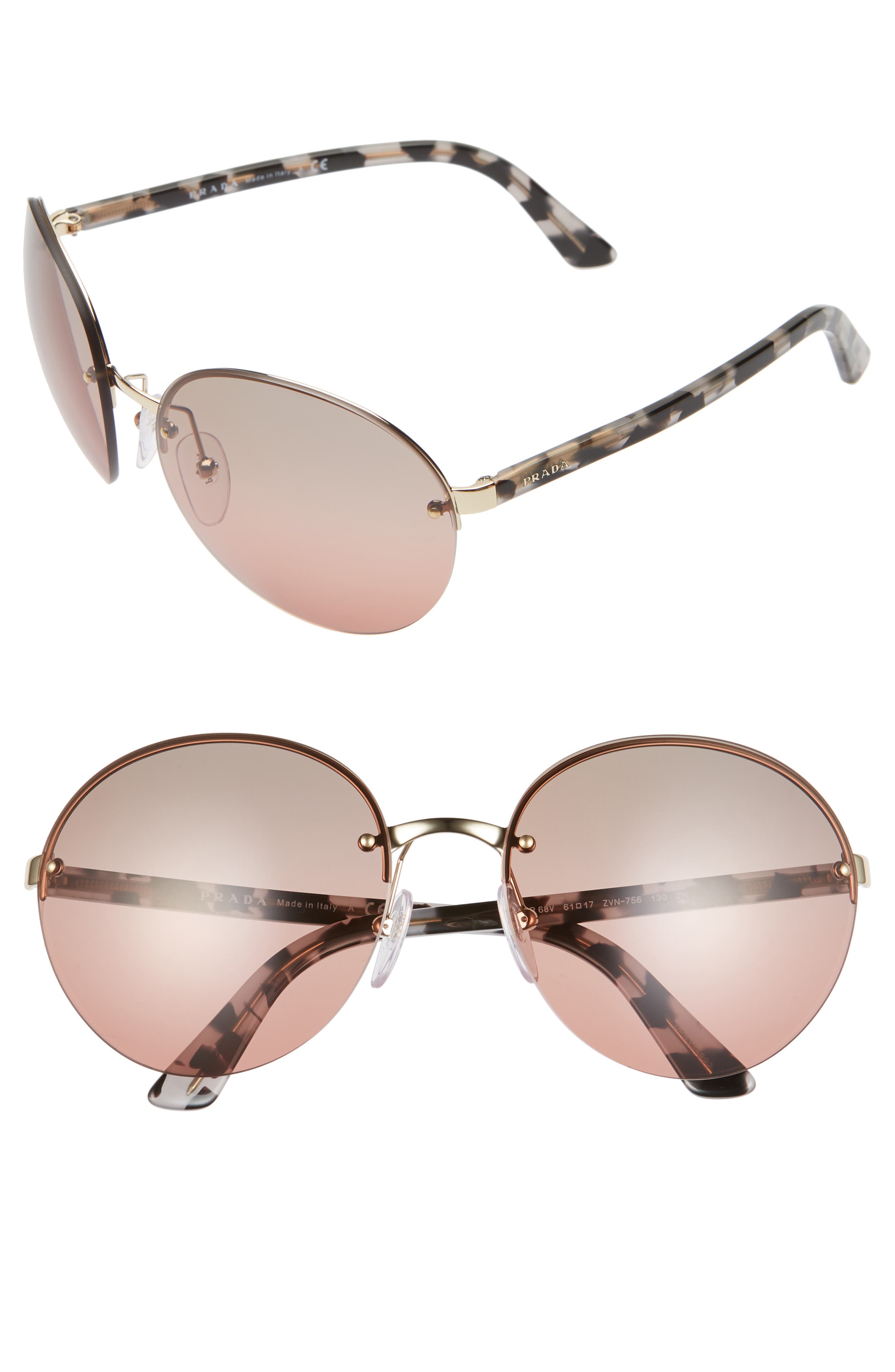- 61mm lens width; 17mm bridge width; 130mm temple length - 100% UV protection - Adjustable nonslip nose pads - Plastic lenses - Metal - Made in Italy - Prada style number: PR 68VS