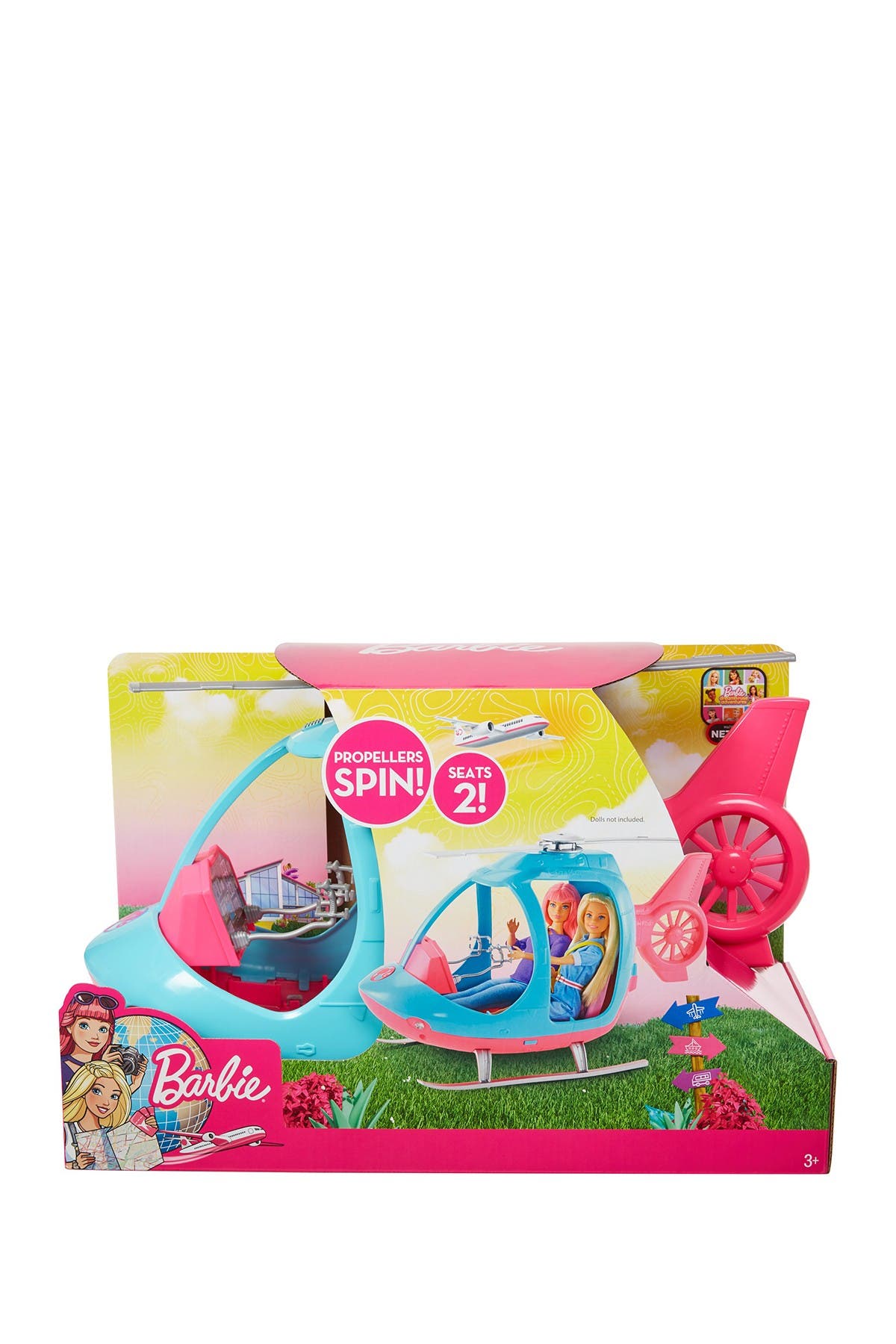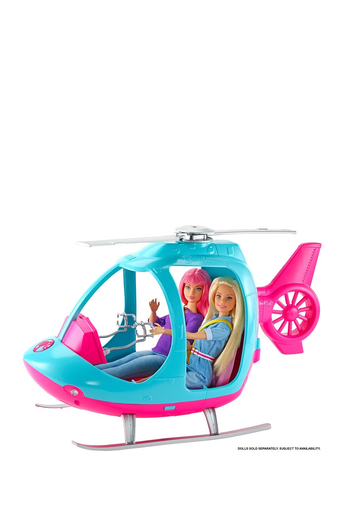 Let imaginations hop into the Barbie® Helicopter and take off to all parts of the world -- this colorful chopper inspires stories to take flight. Designed in bright pink and blue, it's silvery rotors spin with a push. Pick up and "fly" through the air to take in the sights below. Inside is room for two dolls (sold separately) -- silvery "controls" let kids role-play piloting fun, and seat belts keep the passengers safe inside. Inspired by Barbie™ Dreamhouse Adventures™, fans can peek into the everyday life of Barbie® as she embarks on exciting adventures with her family and friends or make up their own stories as they explore the world! Collect other Barbie® travel dolls and toys to expand the playtime possibilities (each sold separately, subject to availability). Includes helicopter; doll not included. Colors and decorations may vary.