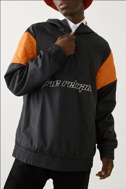 Add a sporty look to your style with a windbreaker featuring contrast stripes and a logo detail.