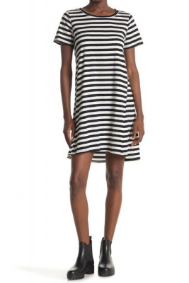 Throw on this easy breezy cotton t-shirt dress for an instant put together look. - Scoop neck - Short sleeves - Slip on over head - Knit construction - Printed - Approx. 36" length (size S) - Imported