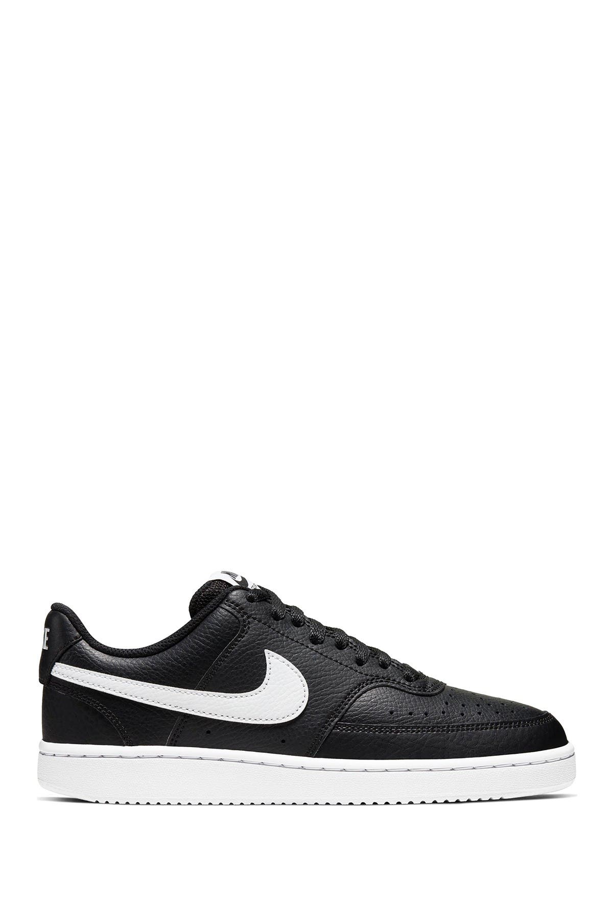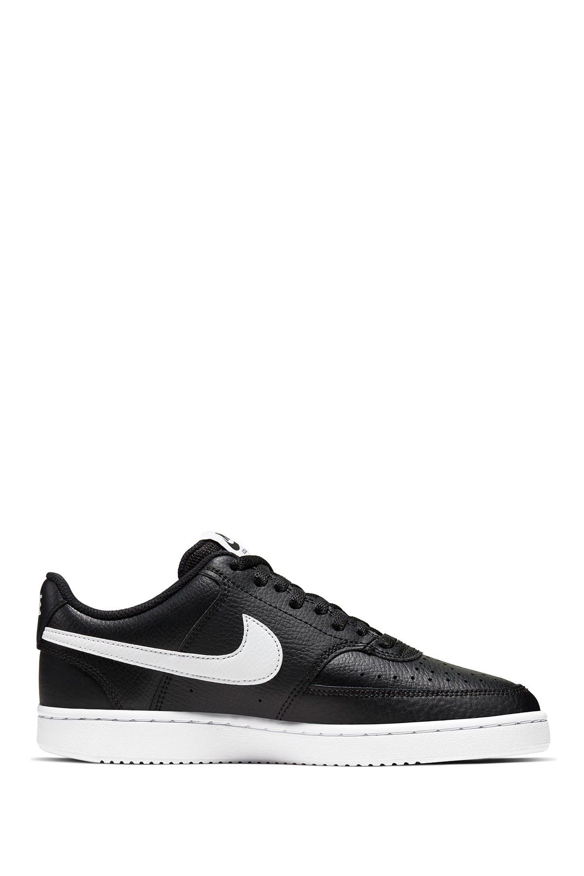 Inspired by mid-1980s basketball shoes, the Nike Court Vision Low sneaker brings a vintage vibe to modern times. Sizing: True to size. R=regular width - Round toe - Perforated vamp - Leather construction - Lace-up closure - Swoosh on sides - Brand print on tongue - Cushioned collar - White sole - Imported