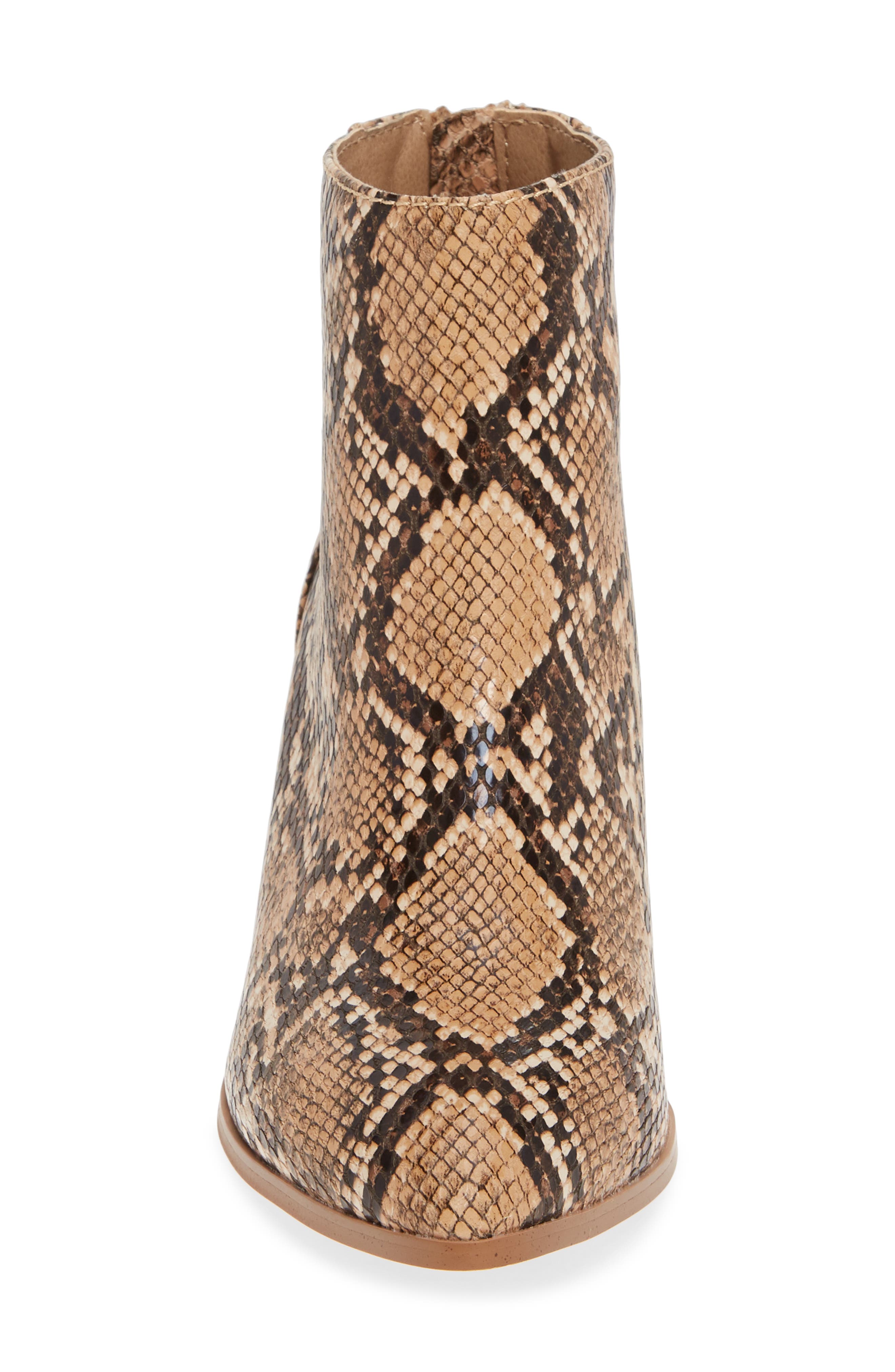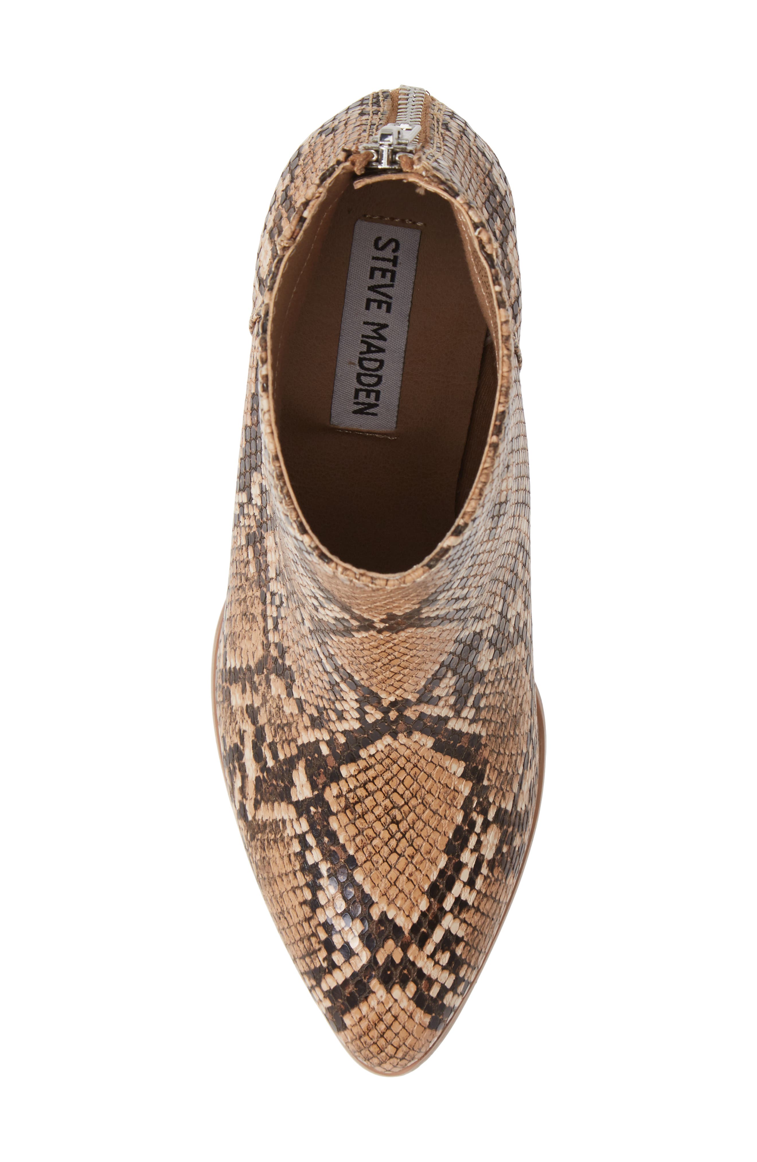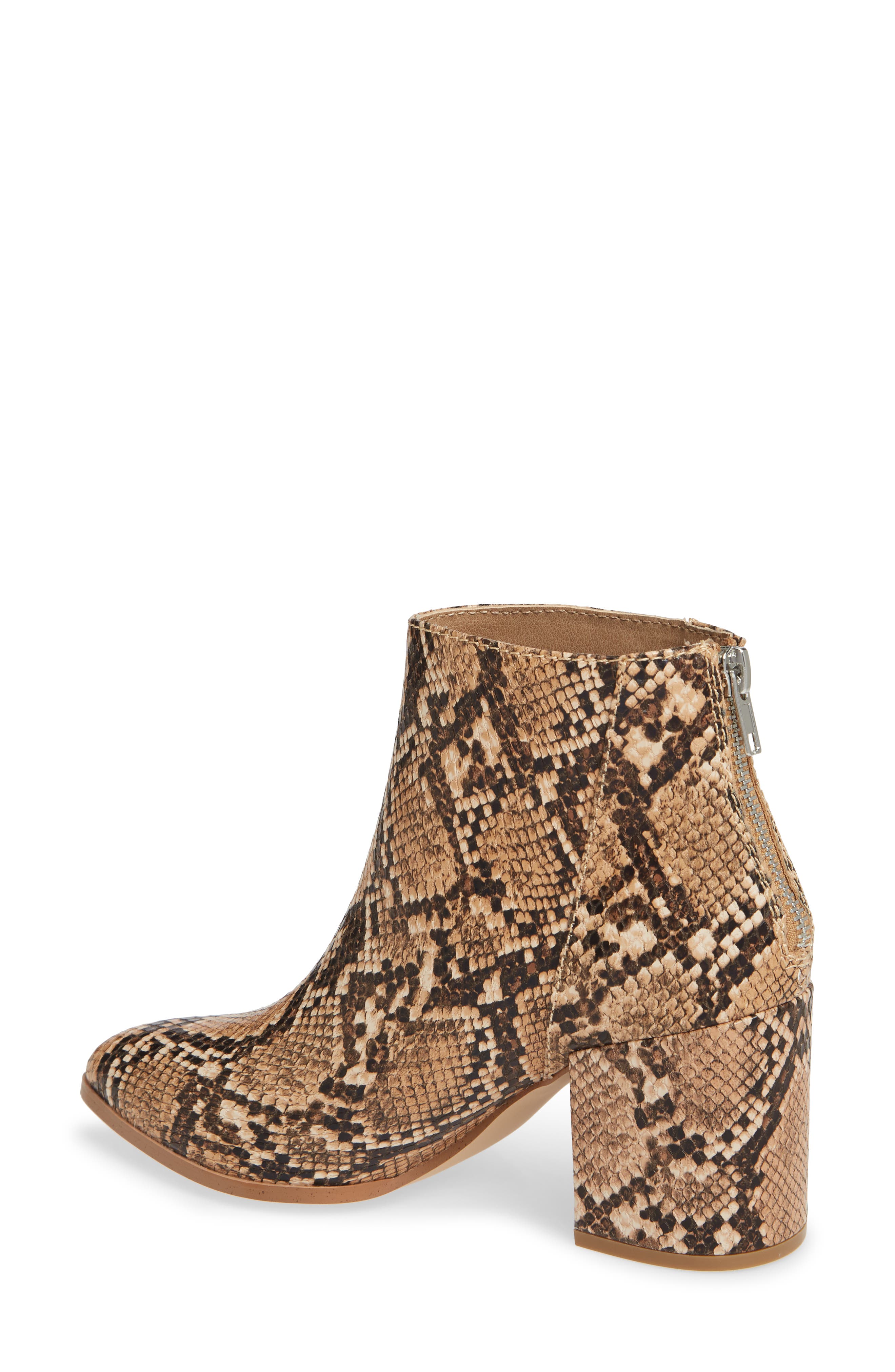 Embossed detailing complement this block heel boot. Sizing: True to size. - Pointed toe - Solid vamp - Faux leather construction - Snake or croc embossing - Semi padded footbed - Back zipper closure - Covered block heel - Approx. 3.75" shaft height, 10" opening circumference - Approx. 2.75" heel - Imported Available in: - Snake print (TAN SNAKE) - Croc embossed (BLACK CROC)