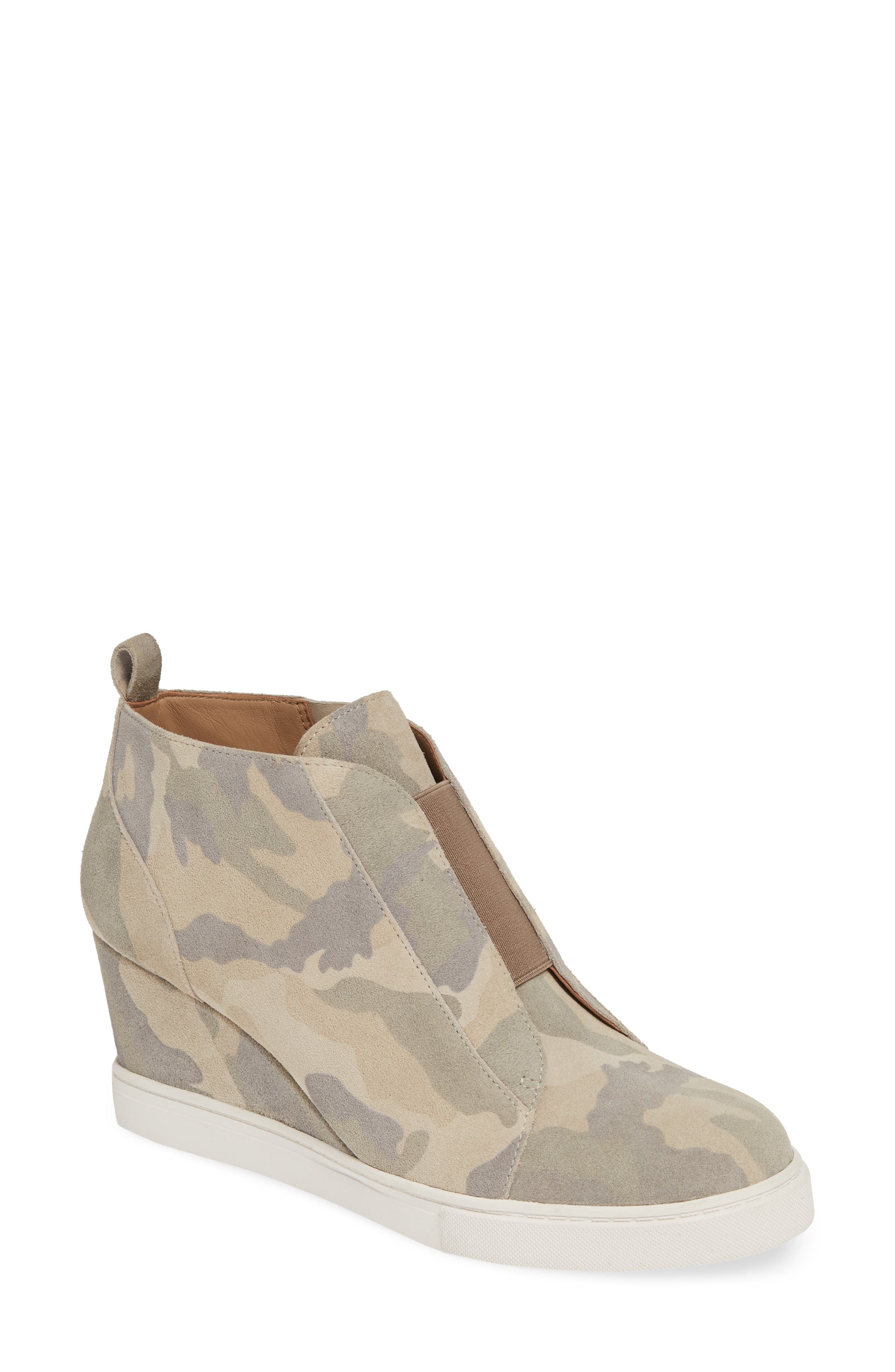 Modern sophistication and cool street style merge in a suave wedge sneaker featuring clean lines and a sporty contrast sole.