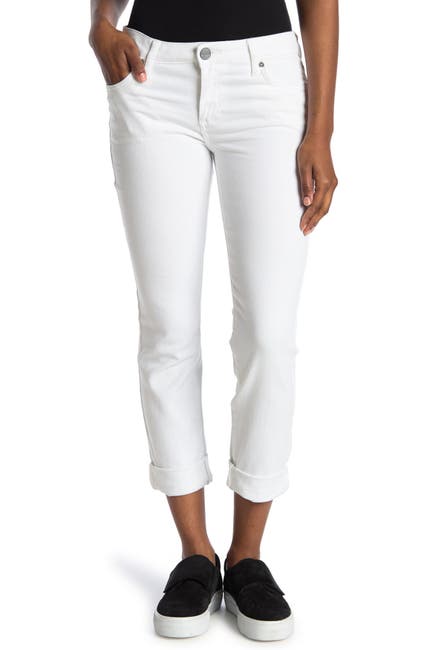 A crisp, icy white wash adds easy warm-weather style to boyfriend jeans cut in a slim silhouette.